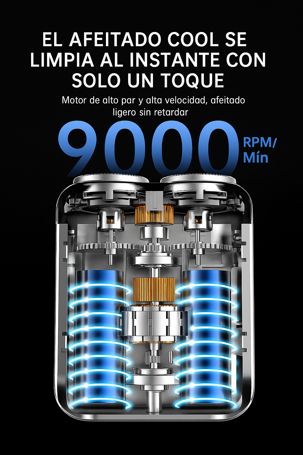 Doble Cuchilla Flotante: Se adapta al contorno del rostro para un afeitado más apurado.